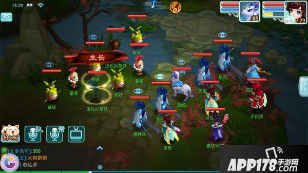 BOSS技能生长会让小怪进化,按照各自队长的习惯,设定好了命令,让五灵使用技能摄灵,优先封印后排最右边的草妖(因为打了3次都是它变身奶妈),然后全体输出BOSS,唐门第一回合可以辅助输出,折剑修罗,仙霞御剑术,务求尽快秒掉BOSS,之后群掉小怪。第一关还是比较轻松的(PS:进化的蛇草妖免疫封印,小怪技能有带几率眩晕)。