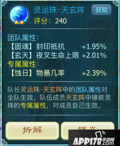 获得未鉴定琥珀珠进行鉴定,将会获得对应阵法的灵珠,琥珀珠的星级不同加成的数值也不同,相同阵法的琥珀珠所拥有的团队属性也并不是固定的,丰富了阵法搭配的多样性。