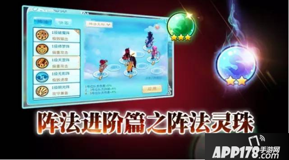 游戏内现有10种阵法,分别为:破魔阵、修罗阵、天罡阵、无影阵、明光阵、天玄阵、元灵阵、金刚阵、神氛阵、天师阵,每种阵法都会带来截然不同的增益BUFF,合理利用阵法及其克制关系,可以在战斗中大大弥补自己队伍的短板,攻克强敌。而阵法灵珠,可以增强阵法效果,专治各种不服......