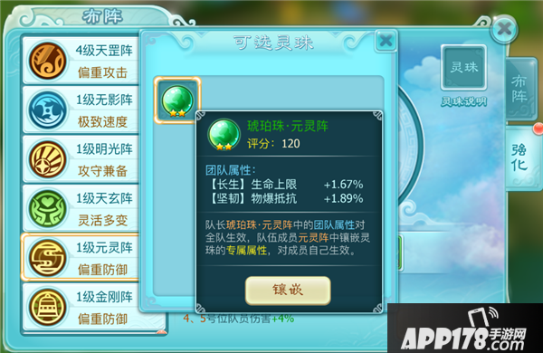 直接选择阵法灵珠进行镶嵌就会镶嵌到对应的阵法上,也可以在阵法中选择镶嵌。