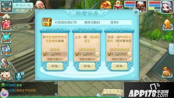 5.阵营任务:每周50次,帮贡的一大来源之一,必须做,经验和铜钱都很丰富。小任务居多,尽量挑选自己能完成的去做,帮贡越高的就好。