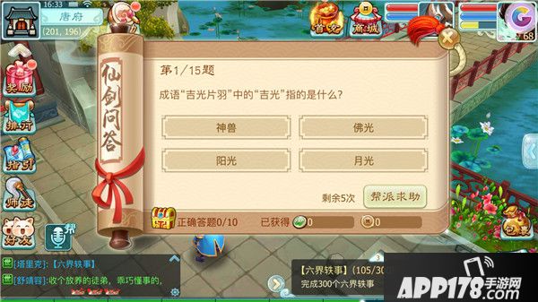 12.仙剑问答:每天必做,经验奖励丰厚。现阶段的题目很简单,籼米都能答上来,不会的帮派求助,用不了几次就能做到重复的题目了。