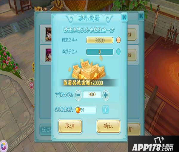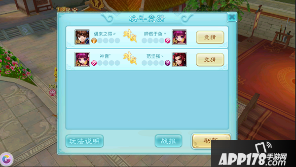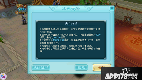 对手接下战书后,双方有10分钟的决斗准备期,期间围观群众可对本场决斗进行竞猜并下注;