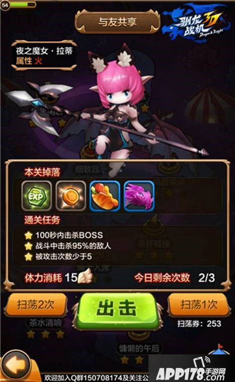 普通关卡第二章的BOSS战,拉蒂一经亮相,便赚足了眼球。外表娇小可爱的她,在一众长相粗犷的BOSS中,不失为一抹亮色。而在这一关卡中,拉蒂以暗黑的形象再次出现,战力也增加不少。下面,小编就为大家讲解怎样征服夜之魔女﹒拉蒂!