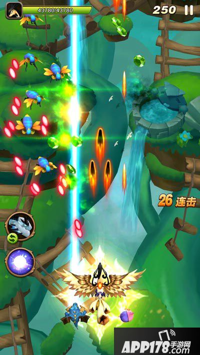 蝴蝶女王的子弹以中心的圆球为出发点,呈放射性散开,好在,子弹密度不大,规律固定。我们可以驾驶飞龙选择空隙躲避并攻击蝴蝶女王中心位置,三轮攻击基本可以解决boss了!