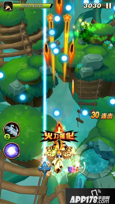 在击落小蜜蜂之后,拾取足够的道具,增强战斗力。后面会出现三个一组的花朵型怪物,这是比较棘手的怪物,因为它的子弹非常大,而且密集!所以就算要受到攻击最多是这里。