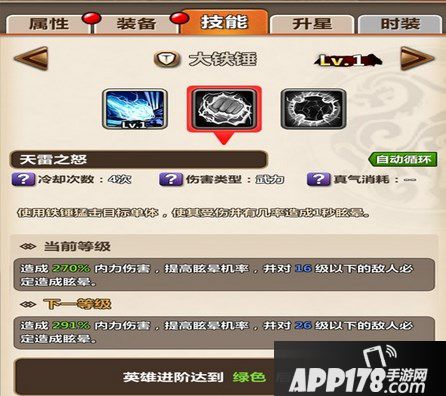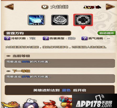 大铁锤的第二技能为单体眩晕的自动循环技能,而且不同于少羽的冲向对方眩晕,大铁锤的这个技能是在面对面时用