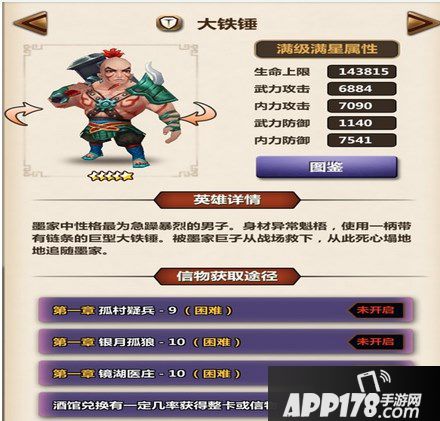 而且从满星的数据上看,大铁锤的生命上限和少羽一样,而且内力防御也是比较高的,只需要装备上多注意武力防