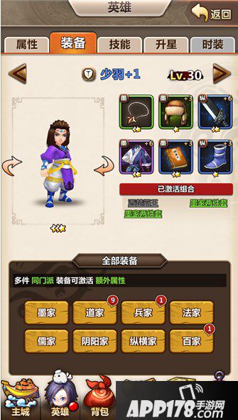技能都非常不错,输出展位要求不高,主动技能百步飞剑具有直接秒杀的实力,Pk不多说,当前仅次于刘邦的存在,过副本中,很多时候我前排残血,加血cd还没恢复,基本都是靠大叔的大直接秒怪而取得三星过图扫荡。所以当你首抽是大叔的时候,基本上这个号你值得玩下去。大叔推荐配装,纵横4件套+任意2件套装效果组合,百家最好若是没有,可选儒家增强血量生存能力。