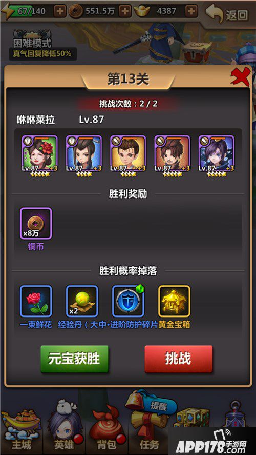 首先说一下攻略中必备的英雄,大妈,颜路,刘邦,盖聂。辅助的有白凤、端木和锤子。