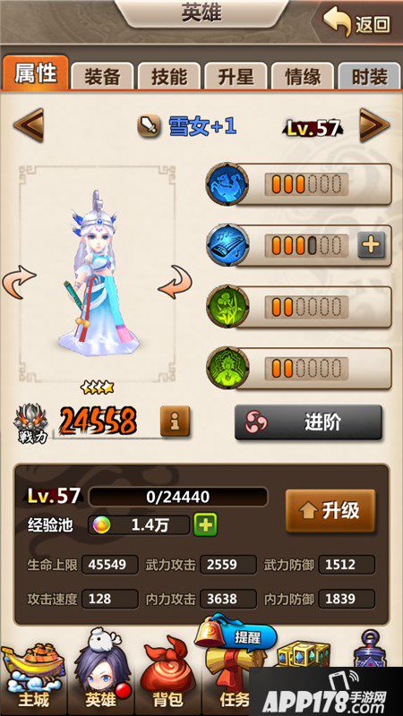 雪女在游戏中属于平民级的英雄,最明显的优势就是信物的获取途径特别多,所以容易升级星级,而且四星和五星级属性也不错,都是团队加成,可以很好的提高全队的防御和奶妈的治疗量,对非人民币玩家来说应该不错的英雄。