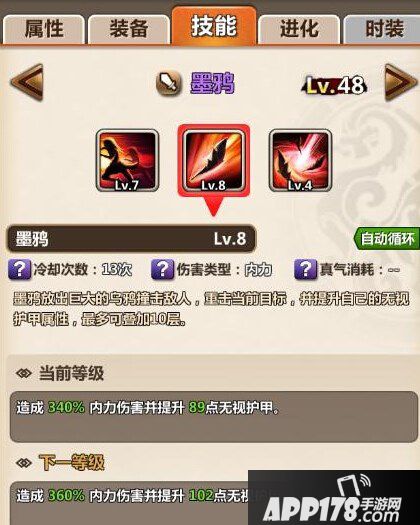 墨鸦是所有角色中武力成长最高的几个之一,内力同比其他武力型英雄更高。