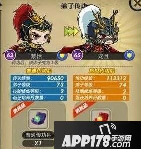 弟子传功需要消耗传功丹,传功丹飞卫普通以及高级两种。普通传功丹可以传递80%弟子的经验,而高级传功丹可以全额传递弟子经验值。