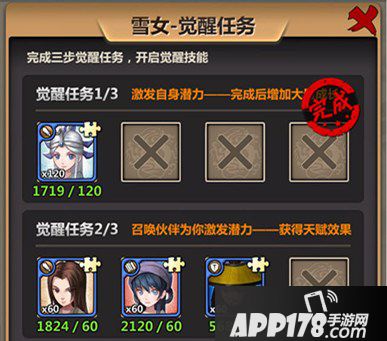 要觉醒雪女首先要完成三个觉醒任务,任务完成后即可开启觉醒技能。