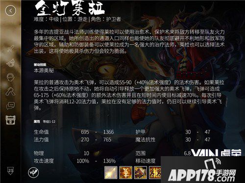 金灯莱拉拥有与天使奥达基相同的6.8攻击距离,并列游戏内第一,配合她的一技能帝王符文,莱拉可在线上尽情施压短手英雄。