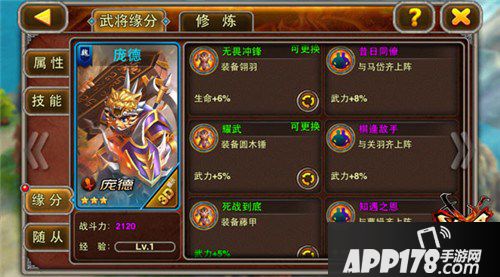 缘分体系是衡量武将们是否具有增值效应的重要指标!如果说庞德的技能可圈可点的话,庞德的官配缘分就有点蛋疼了。庞德作为魏国大将,两大武力加成缘分却是同蜀国的马岱和关羽产生的,当然和曹操的生命缘分固然不错,可惜庞德的缘分全部单向,要么出战,要么冷板凳,注定了庞德无缘伙伴位,孤胆英雄是也!