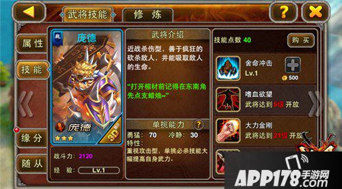 《X三国》每一个武将都是“不一样的烟火”,纵然是蓝将,纵然缘分不吸引人,可依然有玩家对庞德情有独钟哦!单纯依靠输出以及对敌军站位的破坏力,庞德和八竿子打不到一块儿去的张飞、马超、诸葛亮等一起出战,不但技能相辅相成,还能当T用站住场,庞德在PVP中拥有一定的优势!