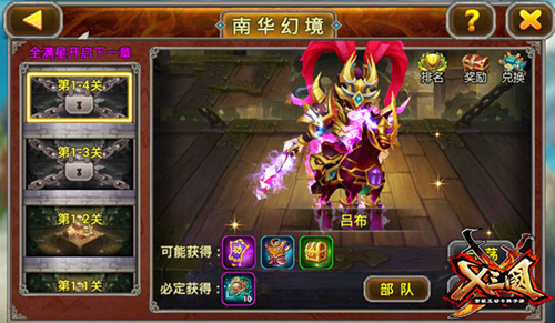 南华出仙人,仙人送好礼,南华令你值得拥有!接受仙人的邀请,群雄镇守幻境关卡,藏在各大关卡中的宝物是否能够被你夺取呢?困难重重的南华幻境面对各路豪杰的挑战,在你的阵容搭配下,武力卓越的守关武将是否依然坚挺?觉醒所需的南华令就在幻境中,你敢来战吗?