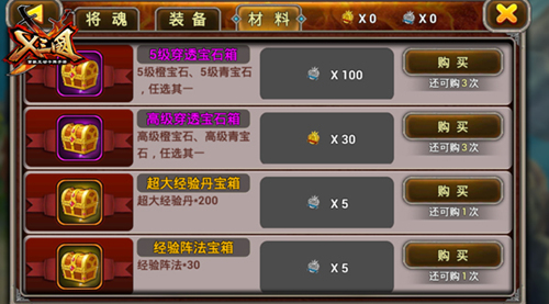 材料页的东西,就是游戏大佬的终极选择。大佬们不缺将魂,不缺装备,但穿透宝石大佬不想要?护甲穿透、魔法穿透按比例无视对方免伤,在面对一些高免伤武将时,穿透宝石的作用就非常值得了。宝石不要,至尊商店还有经验阵法、突破丹、升星石等珍惜道具,总有一样是你需要的!