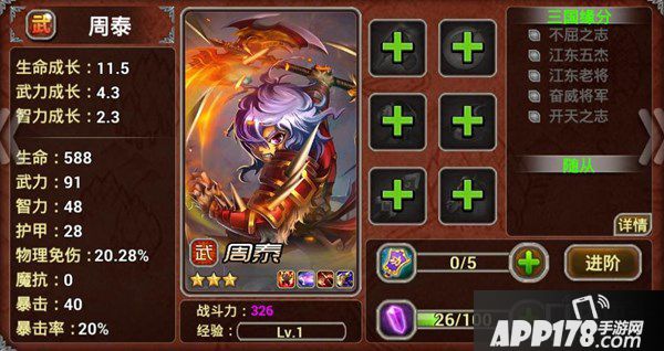 朱然:近战防卫型,可以将最近的敌人击飞,破坏敌人的阵型。独白:“很多人都不认识我,是因为我的名字不霸气么?”(作者旁白:哥们,要不你改名叫猪八戒吧,一定会很多人记住你。)