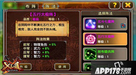 小白看过来,吞吃阵法是可以升战力的哦,阵法图会在各种宝箱,副本中掉落,但是往往没什么存在感!升装升将,却想不到升阵法,这是大忌啊!眼看手上肉盾,奶妈都有了,输出也很给力,怎么就和胜利无缘呢?快去吞吃升级阵法,一定能达到战力大增的神奇效果,一般人我不告诉滴的!