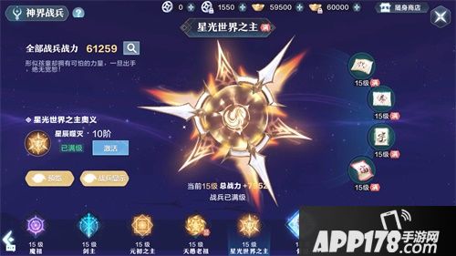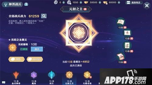 神界战兵包括战兵本体、印鉴和奥义三部分,战兵本体当前共有血刃神帝、魔祖、剑主、元初之主、天愚老祖、星光世界之主、骨祖、巫祖、圣主等九大神兵,神界战兵解锁后即可获得该战兵的属性加成、奥义和外显形象。印鉴需要镶嵌在战兵鉴台上,鉴台分为洪、荒、宇、宙、极5种鉴台,每个战兵可以镶嵌2-5个印鉴,印鉴的等级决定了神界战兵的等级,当前印鉴和战兵的等级最高级为15级。奥义则是战兵的专属被动技能,同时只能激活生效一种奥义效果,奥义的最高阶等是10阶。
