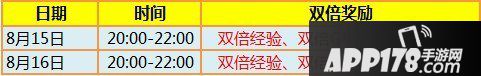8月15日-8月16日,20:00-22:00,公测双倍收益大狂欢,3重双倍惊爆来袭!