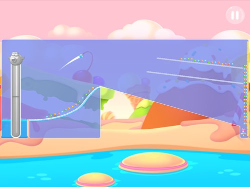另一个重点是本关的能量槽完全无法使用,即使购买道具,所以该关卡的道具是无用武之地。只能依靠玩家控制小鱼的角度和力度来过关。
