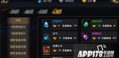 这是玩家主要交易的场所,可以购买各种材料跟神将碎片。其中未进行充值的玩家不予以出售,只能进行购买。如果你想快速找到某个道具,还可以在面板的右下方输入道具名称,再按回车键进行搜索。如果元宝不足以购买道具,可以在“充值”面板进行充值元宝。