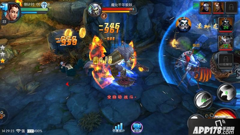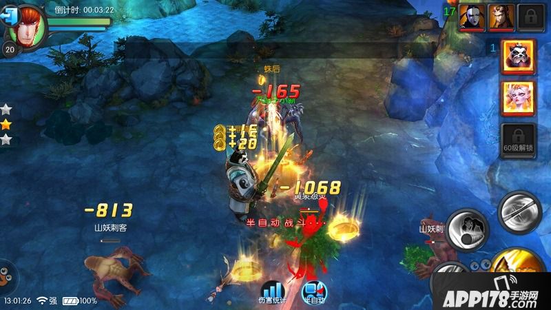 游戏操作模式仍然是ARPG游戏最常用的虚拟摇杆+按键的组合。左屏是控制人物移动的区域,右屏是攻击、技能释放按键。战斗过程中可选手动、半自动和全自动三种模式,大家可能对半自动有些疑惑,它与全自动的区别在于它不会自动释放技能,只是单纯的普功。