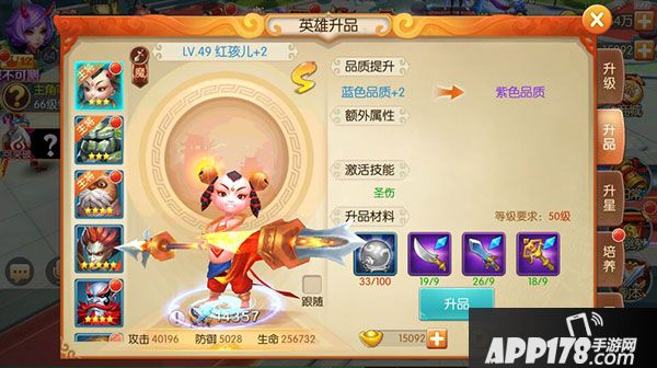 可以消耗升品材料来提升英雄品质