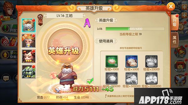 英雄还能消耗培养丹增加玩家的攻防血属性哦!