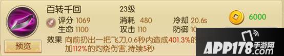 百转千回,一个不受小编待见的技能,CD长,打满伤害需要怪物站在原地5秒之久,因此很难打出面板上计算的伤害,使用性偏低。