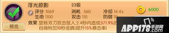 浮光掠影,作为一个刺客没有暴击和咸鱼有什么区别,14.4S的冷却福袋10秒的暴击BUFF,作为一个刺客,完全没有不带上的理由。