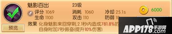 魅影百出,长CD,高伤害附带增伤BUFF,造成伤害所需时间较短,是一个不错的刺客英雄起手技能。