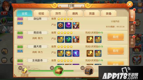其实日常有些小任务完成之后可以领取宝箱和开宝箱的钥匙,紫色的黄金宝箱,有概率开出6阶的极品橙装,就算没开出来也有很多游戏里的必需品。