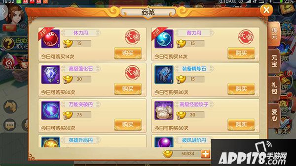 2. 体力、耐力的重要性不用小编多说,所以每天,商城中的体力丹、耐力丹是必须买到最大值的。同理,每周的体力特卖也要买到最大值。