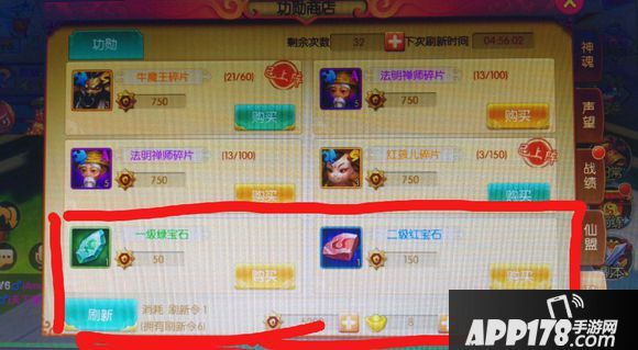 宝石:刷新道具千万别用,只用来刷【商店】中的【功勋】,每天搞若干3-4级宝石很容易!见下图