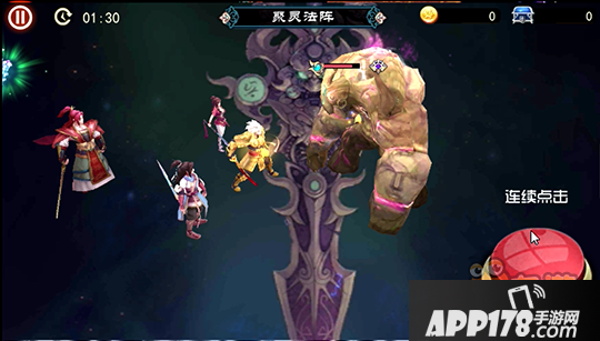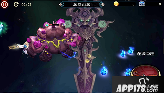 在boss进入斩杀状态时出现一个QTE钮,玩家通过疯狂点击大按钮可以直接让boss身上爆出大量灵蕴石。