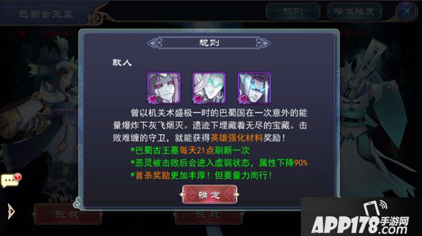 不过想要获得奖励也不是那么简单的事情,王墓中的3个Boss可是各个身怀绝技的,每一个都具有一种特性。玩家想要获得胜利,就要搞清楚Boss的特性,并选择克制其特性的阵容去破解,否则,可是要吃苦头哟。
