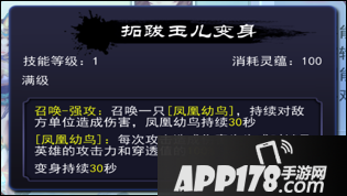变身后终结技效果:召唤出一只凤凰幼鸟,持续对敌方单位造成伤害,凤凰幼鸟每次攻击造成伤害为生成时继承英雄的攻击力和穿透值的100%,凤凰幼鸟持续30秒。玉儿变身持续30秒