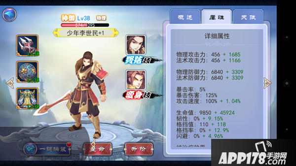 天赋方面,金翅大鹏跟陈靖仇分别点出风压跟冰坠 ,小雪则点出加血和满血回灵,能奶是最好的,有时候救你一命;而李世民则点出巨像等加肉体系的天赋。当你的血量超过67000时,会发现地狱BOSS三倍的技能也不能秒掉你。会瞬间感觉李世民肉肉的。