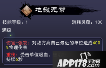 点出超-地藏斩,该技能攻击距离自己最近的地方单位,拾起受到较强的物理伤害,受击方防御降低、且无法释放变身、终结技的效果。点出灵犀,以便能更快的回复自身灵蕴值。点出强-地狱无常,对敌方距离自己最近的单位造成较强的物理伤害,并使得其受到重伤效果。