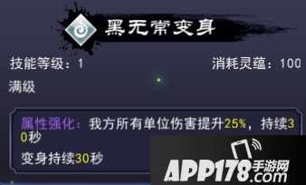 变身技能效果:变身期间,我方所有单位伤害提升。