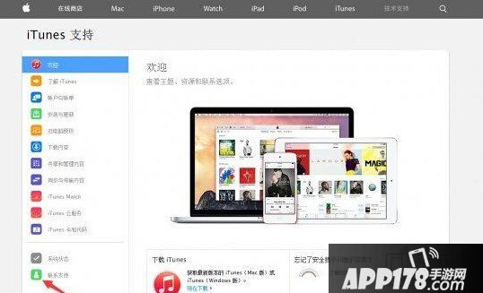 第三步:选择窗口中央的 联系 iTunes Store支持