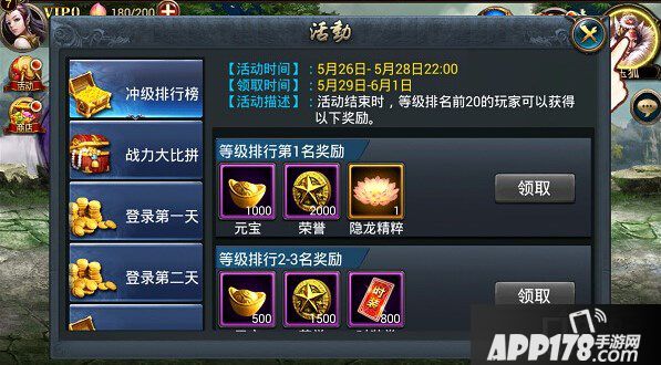 活动内容:我们将读取5月28日22:00时全服玩家的等级排名作为依据