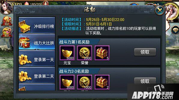 活动内容:我们将读取5月30日22:00时全服玩家的战斗力排名作为依据