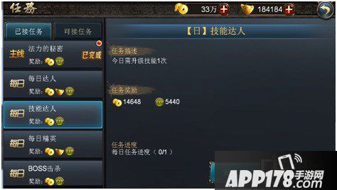 每日任务是获得升级经验的另一个重要途径。当等级到达20级以后,每天都有足够的每日任务可以完成。每日任务中有非常多的任务类型供玩家选择。当然,这些任务通常轻松并且容易完成。