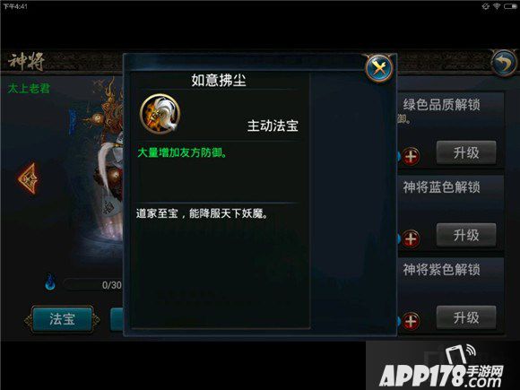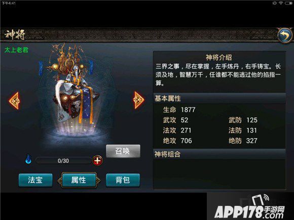 太上老君是辅助型神将,可以增加友方防御,与佛塔天王类似。