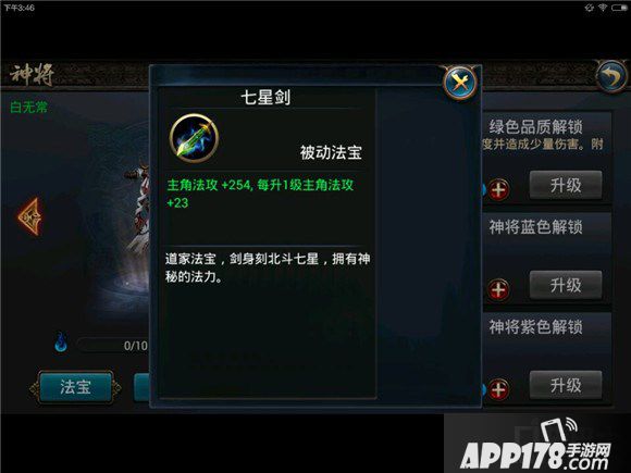 七星剑:增加主角法攻。(神将紫色解锁)